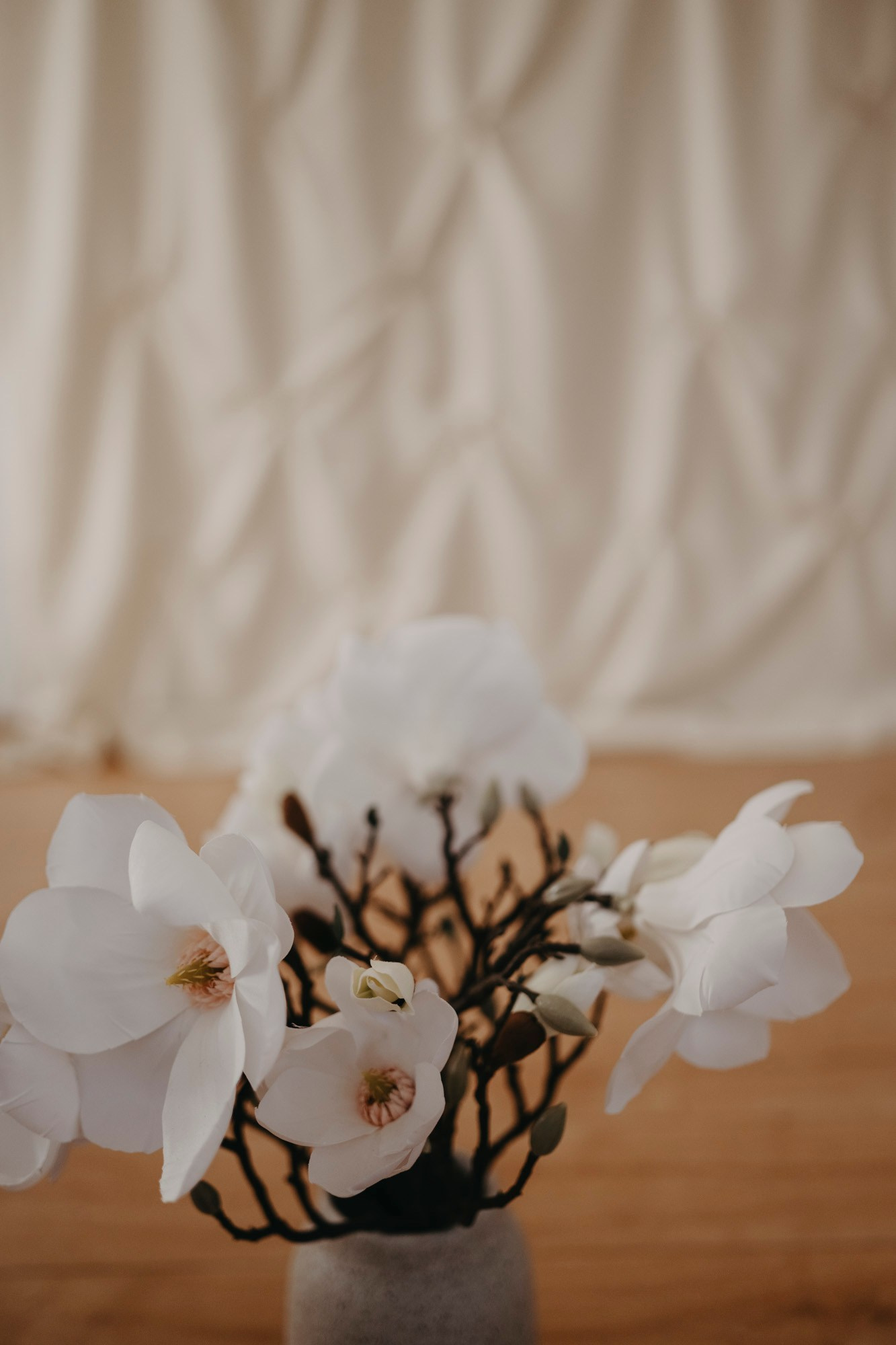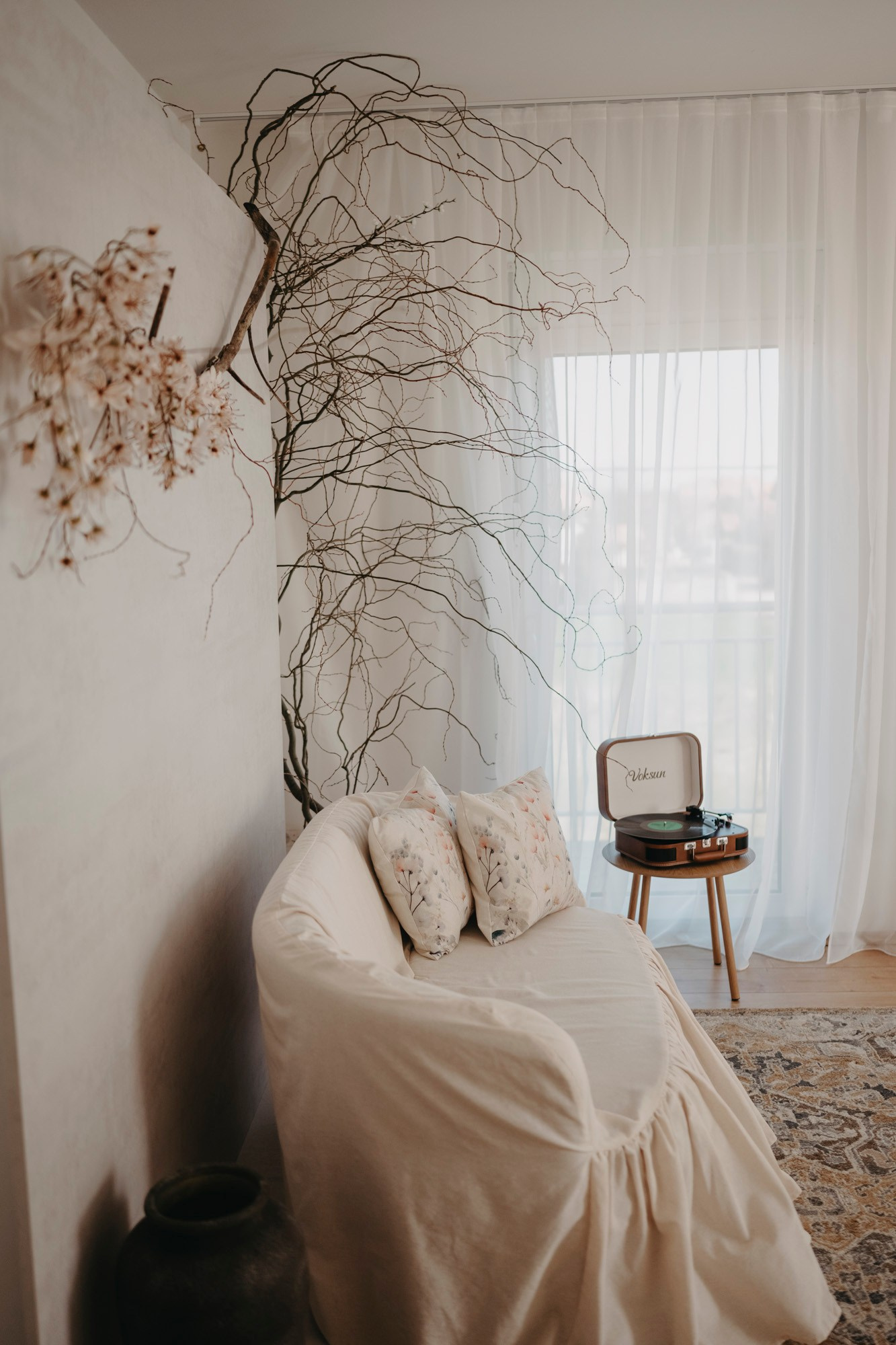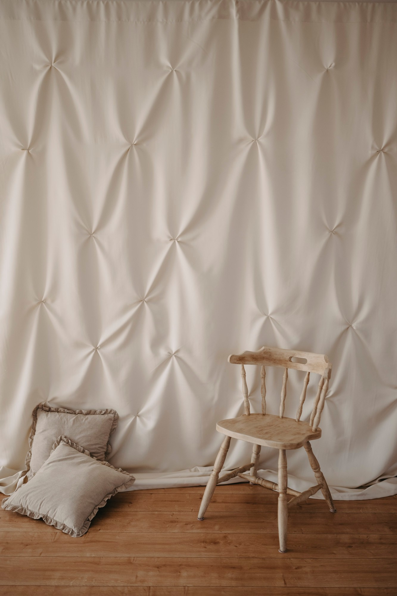 Studio je uređen u toplim, svetlim tonovima — krem, bež, pesak, uz prirodno drvo i nežne teksture lana i pamuka. Svetlost je mekana, prostor prozračan, a detalji su svedeni i romantični, bez vizuelne težine. Zato je važno da i garderoba prati tu smirenu, prirodnu estetiku. Važno je naglasiti — potpuno bež kombinacije nisu prioritet niti su obavezne. Ne morate svi biti u istom tonu. Slobodno unesite boju, ali neka ona bude prirodna i blago zagasita: maslinasta, topla plava, terakota, puderasto roze, nežna siva, boja lavande ili toplog peska.